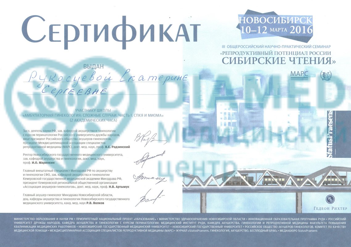 Рукосуева Екатерина Сергеевна является акушером-гинекологом и врачом УЗИ. Екатерина Рукосуева в том числе делает малые гинекологические операции, занимается коррекцией дисбиотических процессов в гинекологии, а также проводит гистеросонографию. Сочетание в работе двух специальностей - гинекологии и эндокринологии - обусловлено тем, что большая часть патологий женской репродуктивной системы так или иначе связана с гормональным фоном. Подбор противозачаточных препаратов, бесплодие и нарушение менструального цикла - наиболее распространенные причины для обращения к гинекологу-эндокринологу.